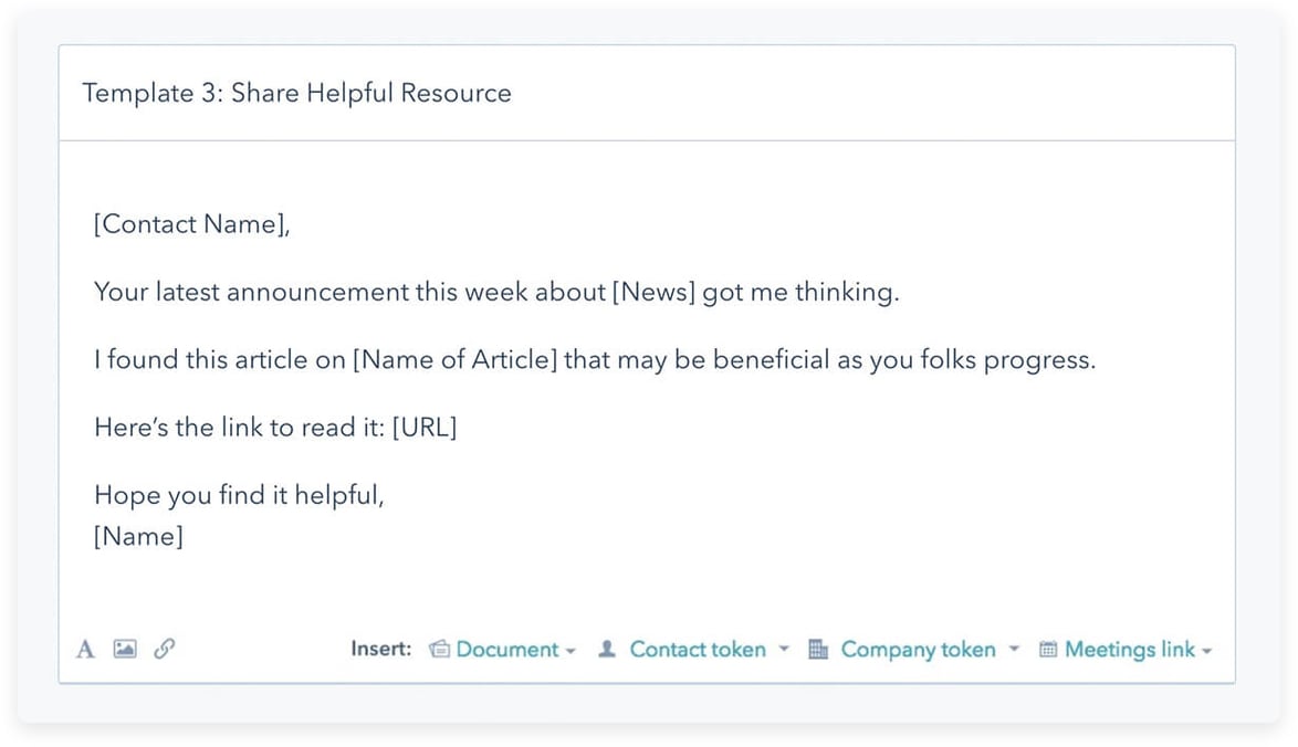 CRMs like HubSpot offer customizable email templates that allow sales reps to quickly personalize and send emails. Simply write master versions of common outreach emails and save them as templates. Attach marketing collateral such as guides, eBooks, or proposals to educate prospects and highlight the value of your product.